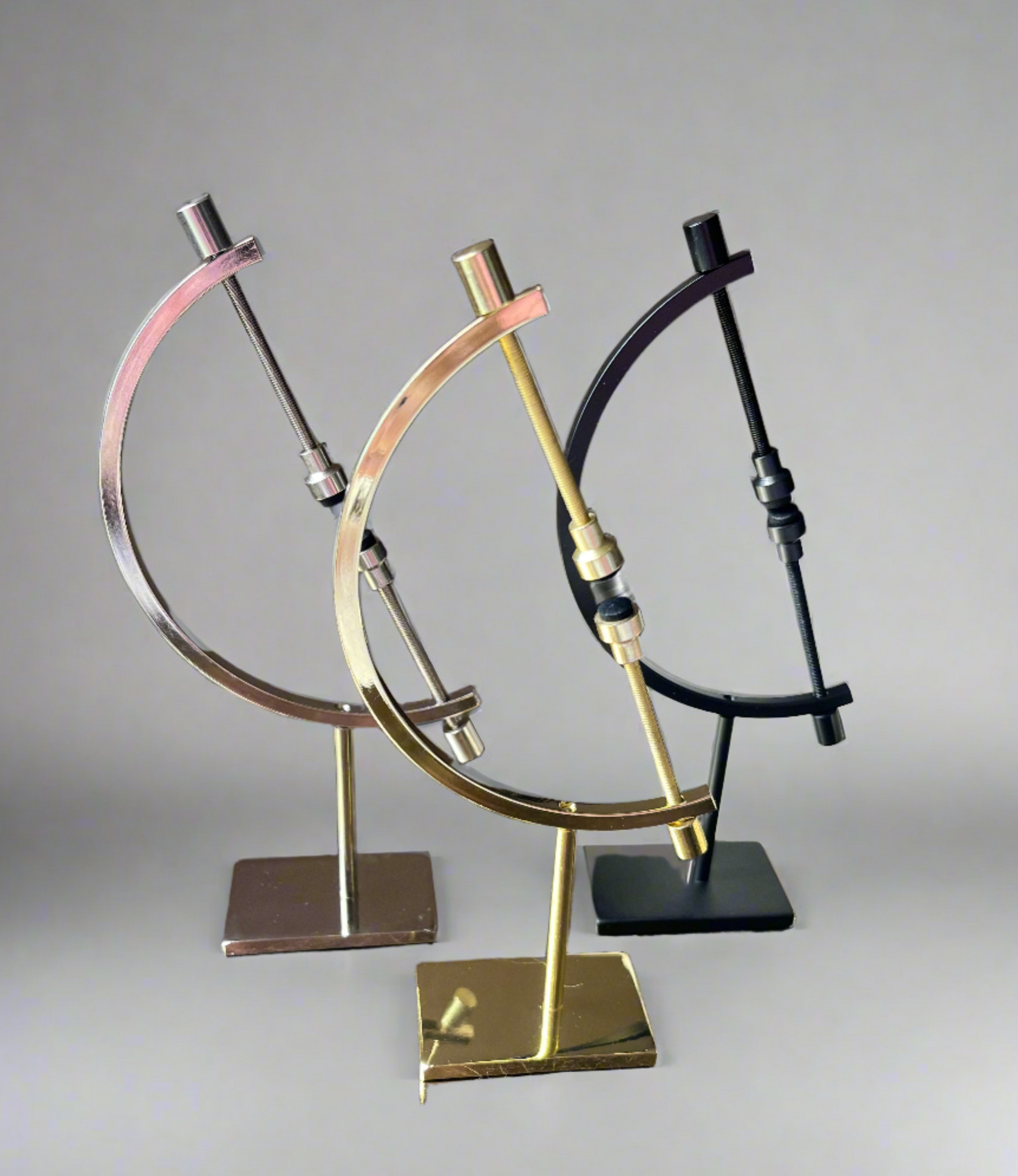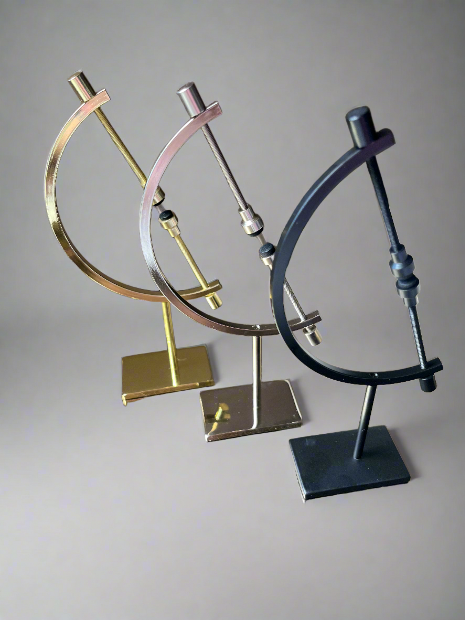 Elevate your favorite crystals with our stunning Caliper Stands. Crafted in luxurious matte black, gold, and silver, these stands add an elegant touch to your crystal display. Showcase your collections with our beautiful stands.