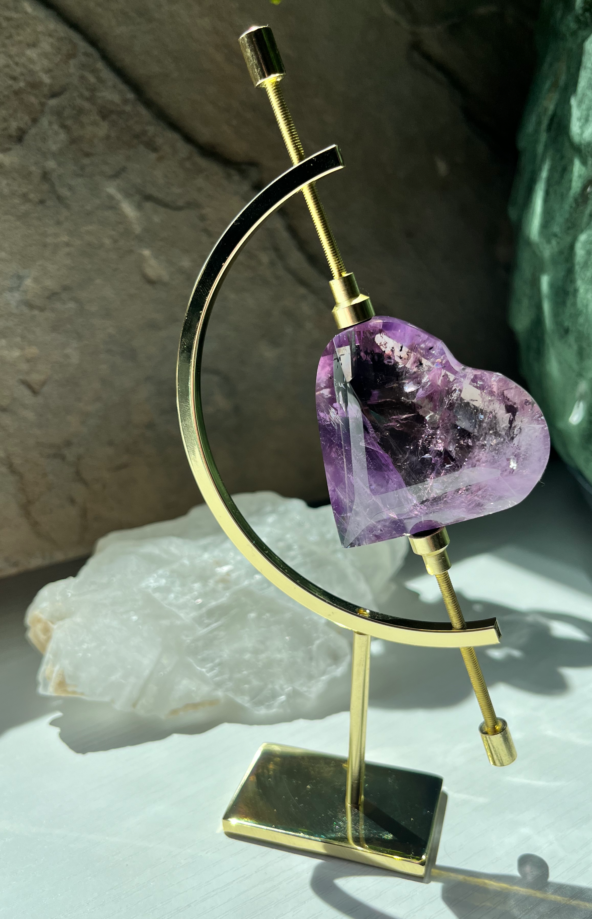 Unleash your inner peace with the Faceted Amethyst Heart. This stunning gold caliper stand showcases the natural beauty of amethyst while providing protection, divinity, and intuition. The faceted design adds a touch of balance and the perfect accessory for anyone seeking a little extra guidance (and style!).