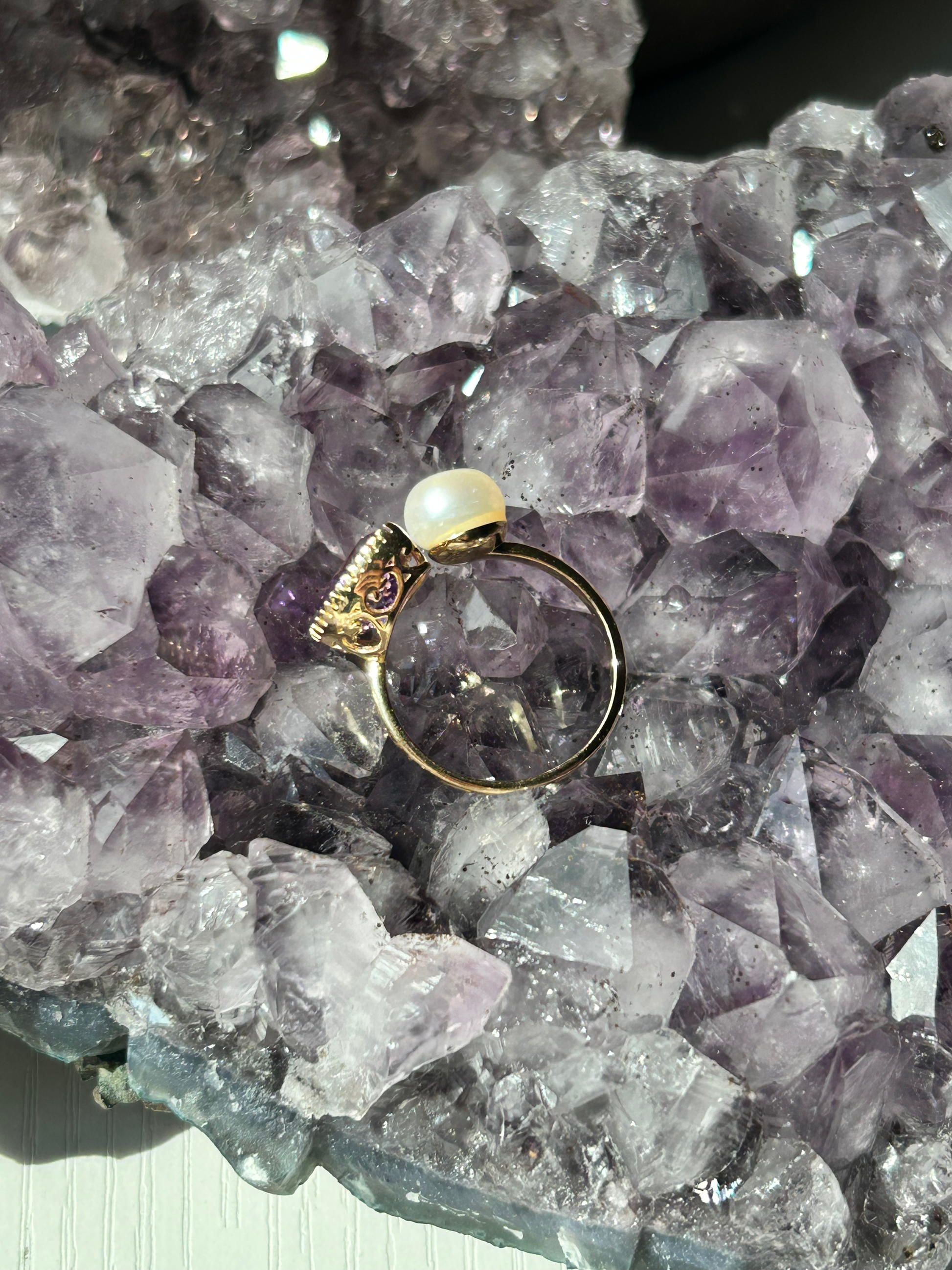 Pearl + Amethyst Ring | Size 8