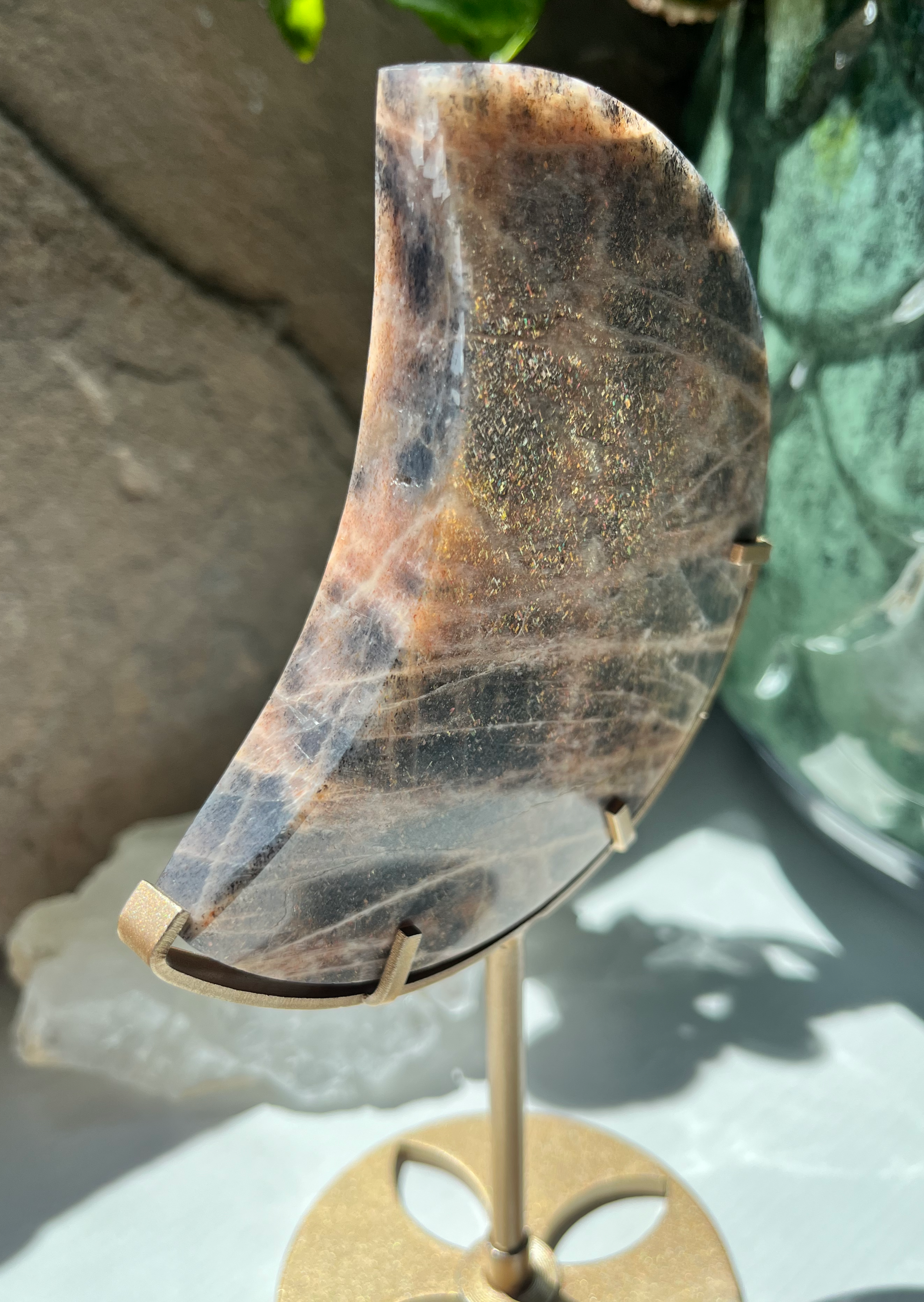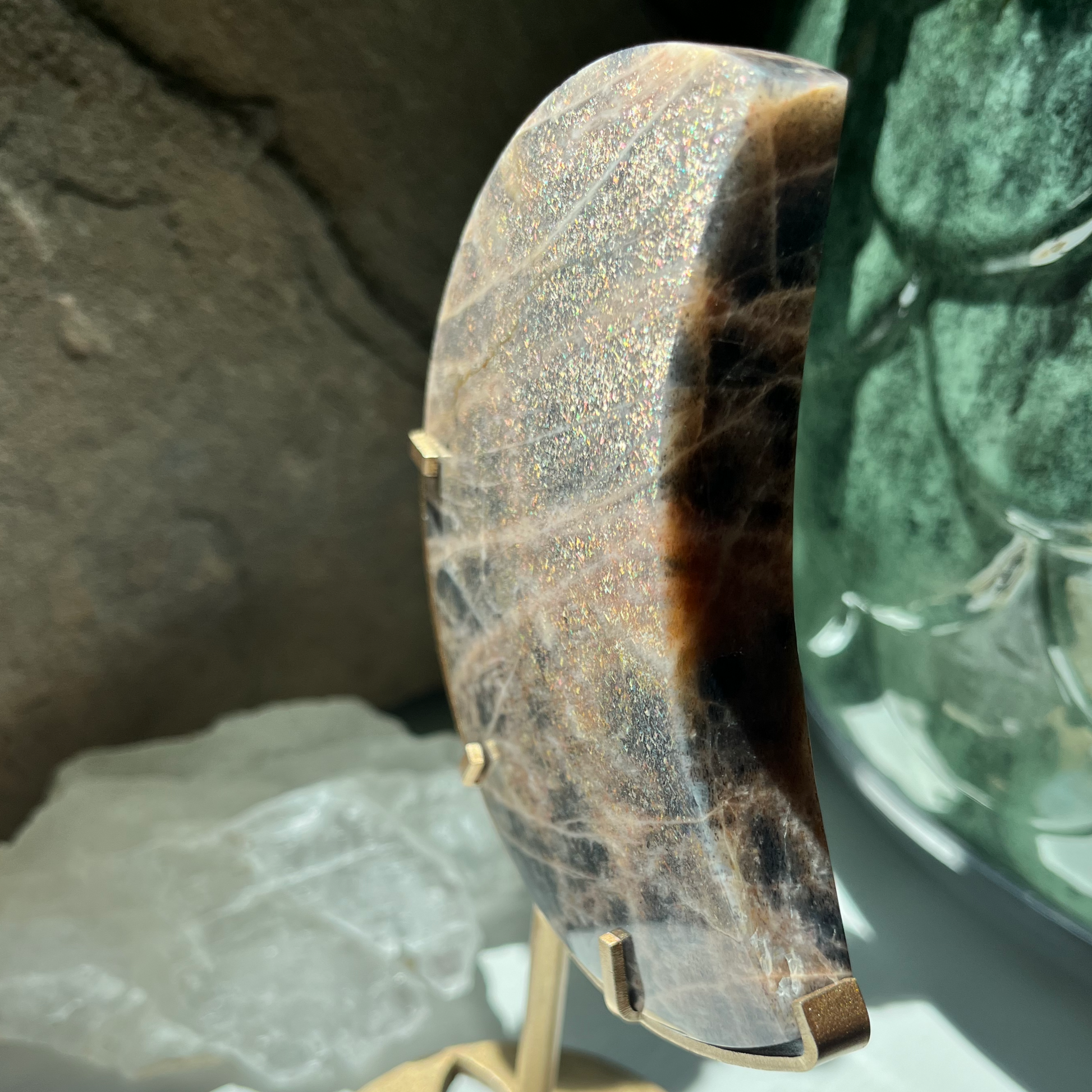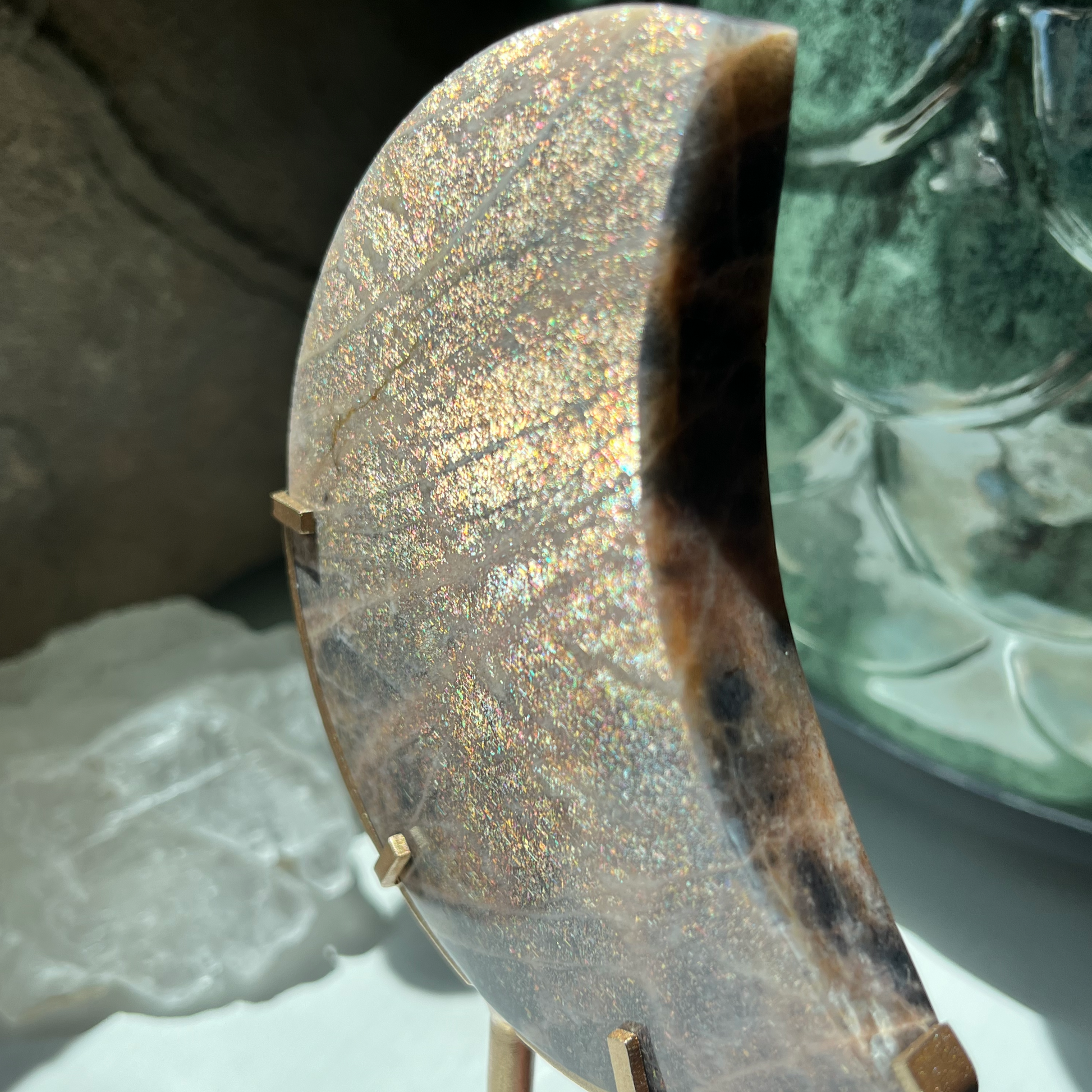 Unleash your inner magic with the Rainbow Lattice Sunstone Moon. This mystical stone radiates warmth and joy, empowering you with positivity. Perfect for anyone seeking a touch of enchantment in their life.