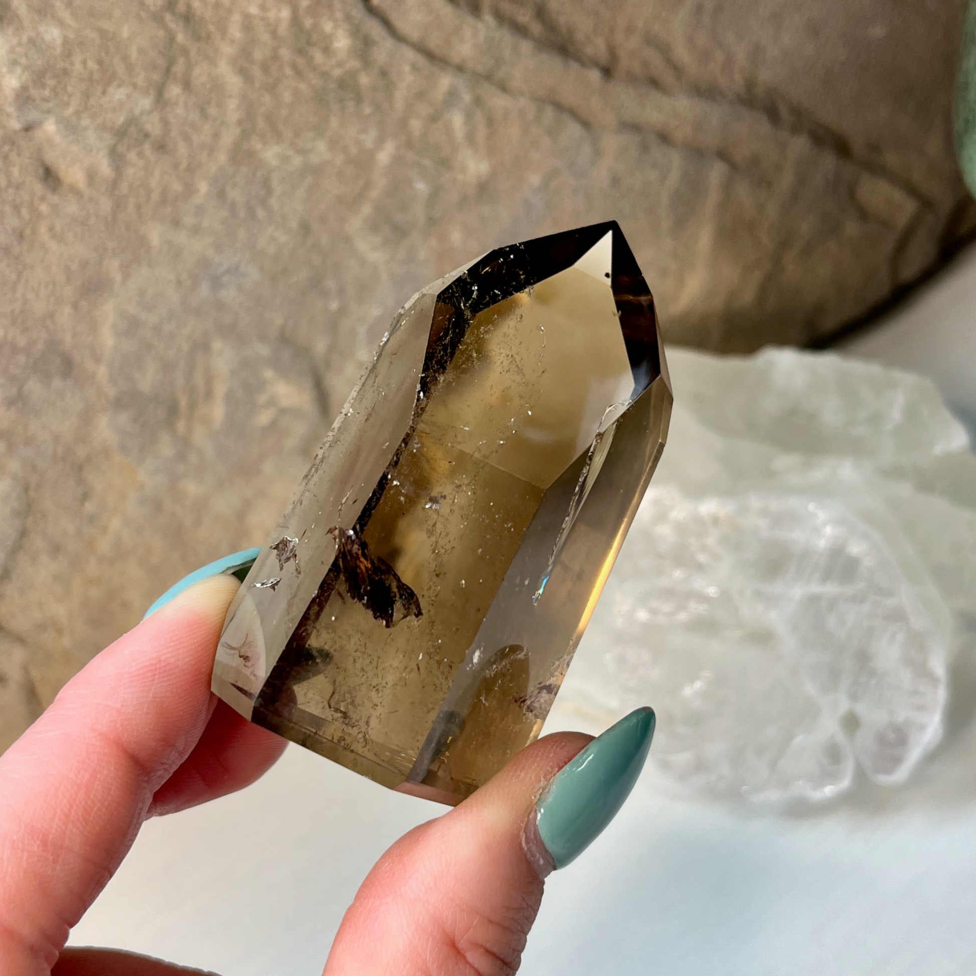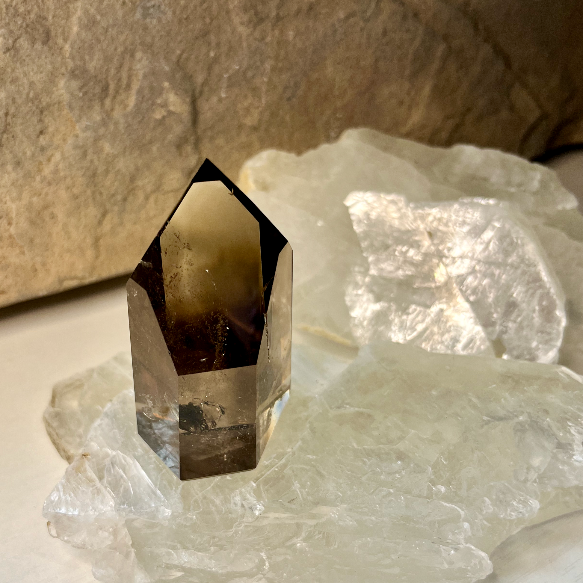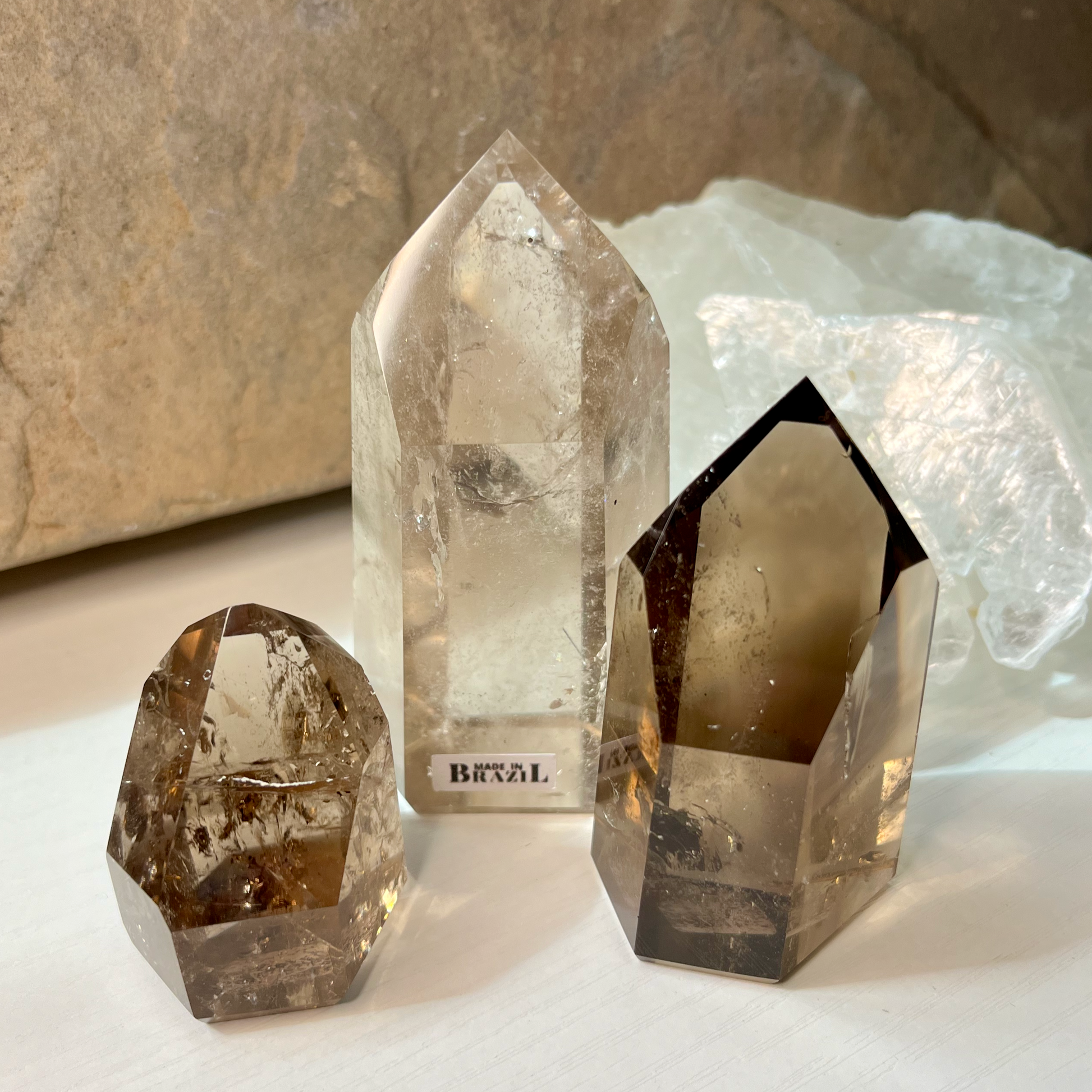 Natural Smoky Quartz crystals, these beautiful towers offer ice-clear clarity and protection, while grounding and dissipating negative emotions and energy. Ready to elevate your vibes?